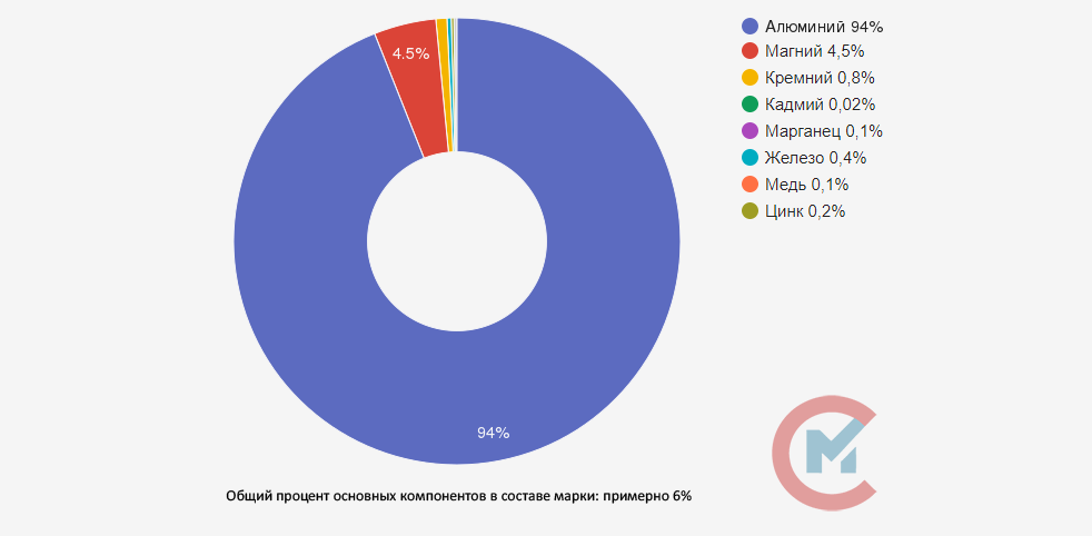 • Алюминий (Al) 91-94,6%